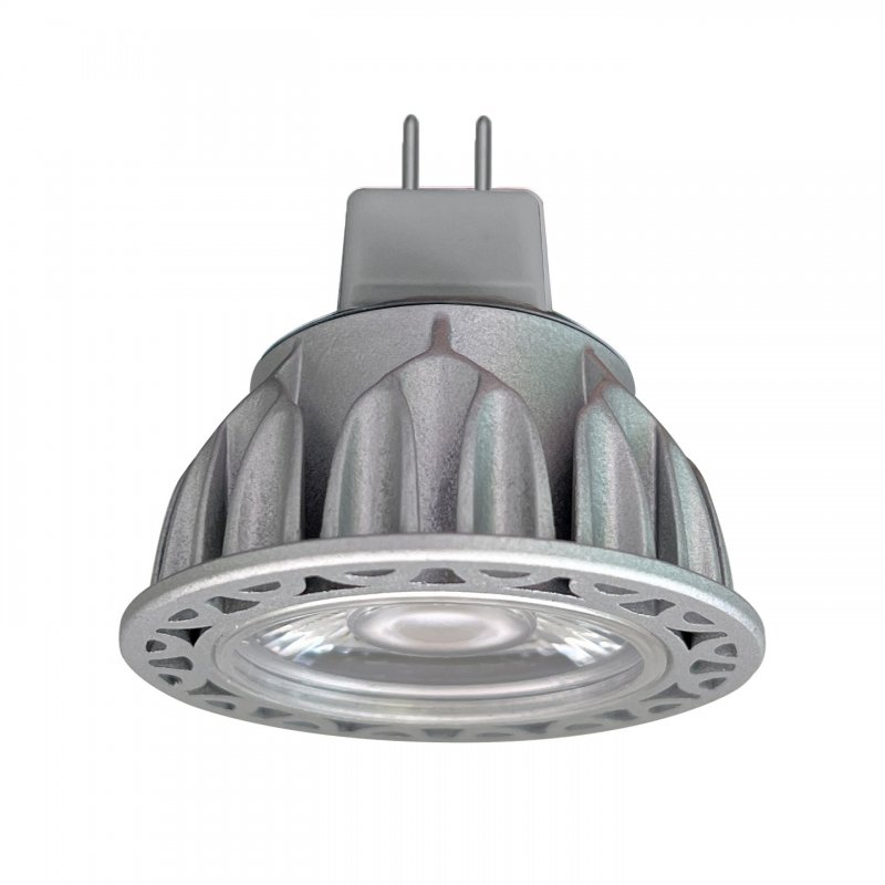 4W, GU5.3 Base, 12V AC/DC Input, 97 CRI, 3000K, 515 Lumens, R9 - 92, 36˚ Beam Angle, 35,000 Hours Average Life, Dimmable