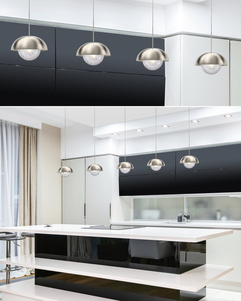 Hand-crafted glass globes in Amber, Alabaster, Latte or Clear color radiate warmth and visual intrigue. Each finish offers a unique play of light and texture.